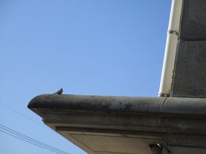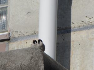 ひさしの上で、子供たちを迎えているようです(見張っているのかも・・・)
