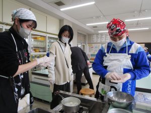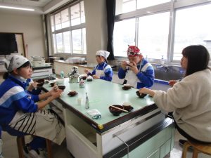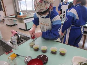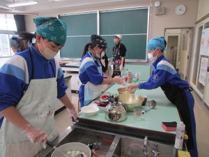 家庭科「ゆでる調理」で学んだ、ゆでる知識を使って、白玉団子を作りました。