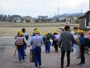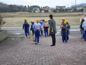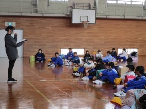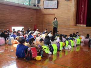 その後、体育館に集まって地区児童会担当の話を聞き、集団下校です。静かに待って、目をつないで話を聞いていました。素晴らしい心です。