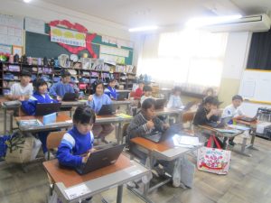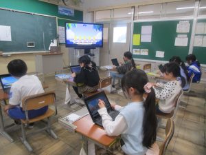 そこで、練習をがんばってきた4年生が、よい天気の今日、学年マラソン大会を開催しました。