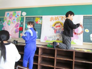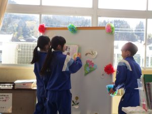 卒業式を明日に控え、3・4・5年生が掃除や準備をしてくれました。