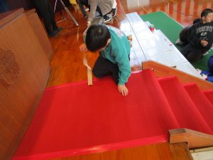 5時間目は、3年生が1~3階の掃除、4・5年生で教室や会場の準備です。