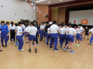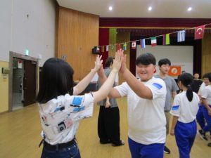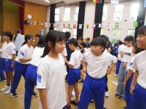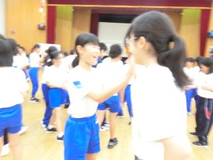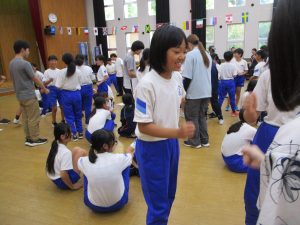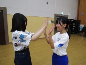 あいこになるまでじゃんけんをし続け、あいこになったらハイタッチをするゲームでは、あちらこちらで「イエ~イ」の明るい声が響きました。