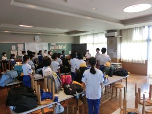 1時間目は、北陸電力の方と「地球温暖化」の仕組みや発電、そして、地球を守るためにできること等について学びました。
