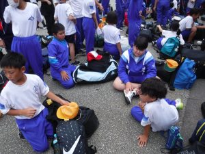 5、6年生は今日から2日間の3校合同宿泊学習に向けて出発しました。