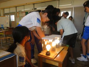 空気と二酸化炭素の温まり方を比べたり、手回し発電機で明かりを点けたりと、実験や活動を通して楽しく学ぶことができました。