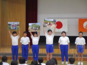 米づくりやりんご栽培、獅子舞など、上庄のよさを元気に紹介しました。