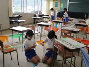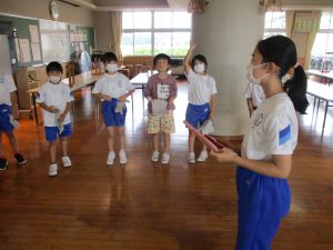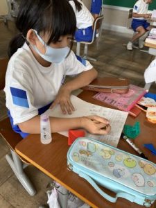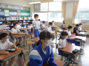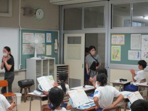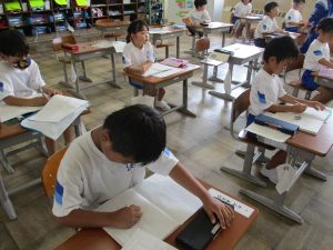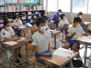 始業前の玄関では、「昨日、○○分勉強したよ」と教えてくれる児童もいました。