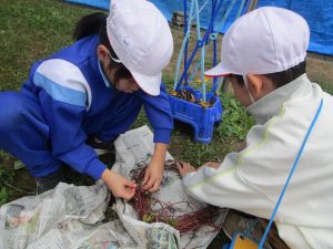 授業が始まり、まずは、吸水した米がどのように変化しているかを見比べました。