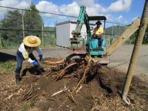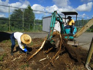 谷内口さんも来てくださり、絡みついた根をのこぎりなどを使って切り、新井さんが作業しやすくしてくださいました。
