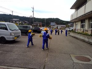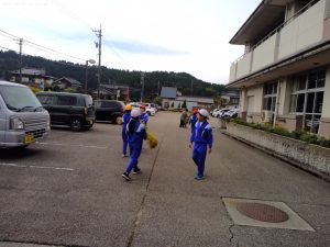 私は稲をランチルーム前に持って行く仕事でした。1、2年生からもらったら、4年生が玄関前で待っていてくれてすぐにパスしました。楽しかったです。最後に3つぐらい稲を同時に持っていて面白かったです。ブルーシートも運びました。途中お茶を飲みながらしました。
