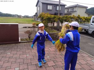 私は稲を運ぶのを頑張りました。稲が少し重かったです。でも、稲を運ぶのが楽しかったです。協力して活動に取り組むことができました。