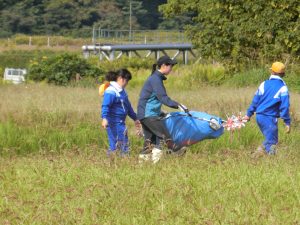 稲を刈り取ったあと、感謝しながら5、6年生で外しました。