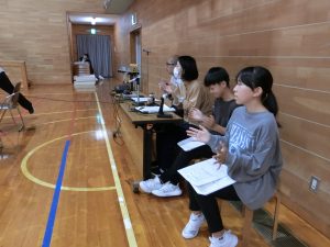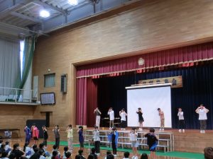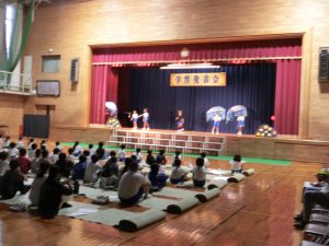 学習発表会のリハーサルは、演技はもちろんのこと、舞台の成功を支える係の動きを確認する日です。