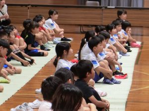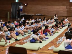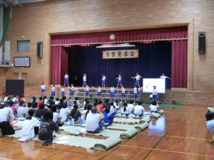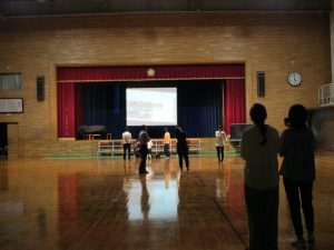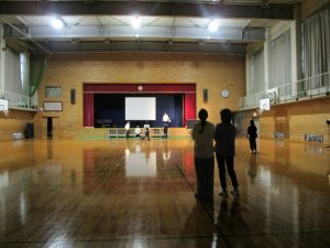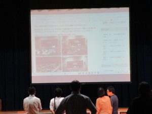 振り返り後、先生方が体育館に集まって、試行錯誤しています。