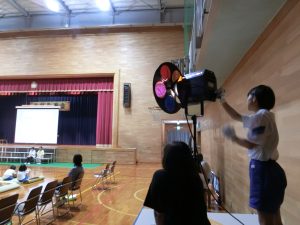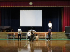 プロジェクターや電子黒板での資料提示と、子供の表情がよく見えることを両立させることは、なかなか難しいことです。体育館の照明をどこまで点けるか、スポットライトをどのように当てるか、実際にやってみないと分かりません。