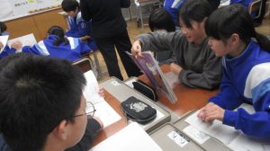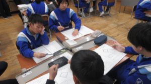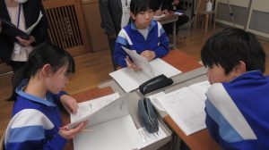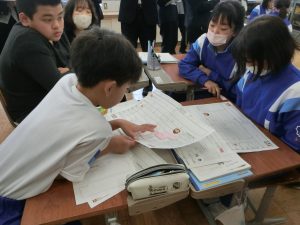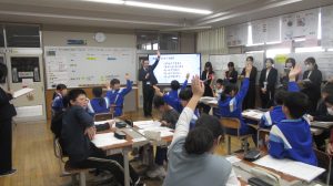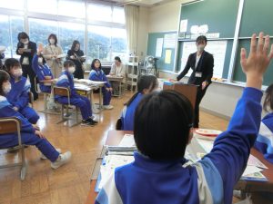 富山県西部の小学校から、多くの先生方が家庭科の授業を観にいらっしゃいました。5・6年生は大勢の先生方に囲まれて緊張しながらも、自分の考えを発表したり、友だちと一緒に考えたりする姿を見せてくれました。