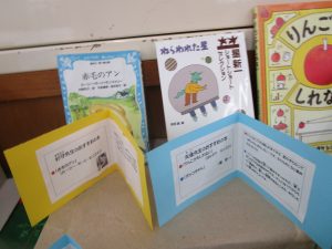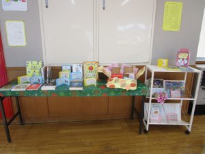 図書館司書の横井先生と図書担当の森谷先生が昼休みに展示をしてくださいました。