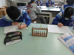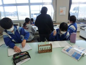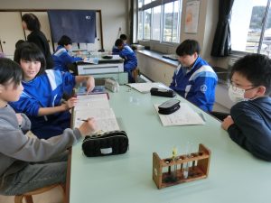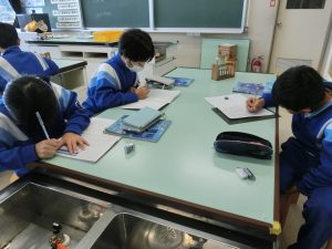 今日は、金属を溶かす水溶液として、塩酸は鉄やアルミニウムを溶かすのかを実験で確かめていました。実験から分かったことを、自分の言葉で丁寧にまとめています。