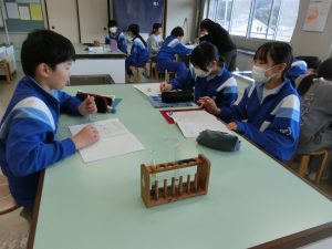 先日、中学校の入学説明会に行ってきた6年生です。静かにノートにまとめる姿から、中学校進学を意識しているように感じました。