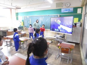 特に低学年は曲の初めから元気に歌っていますが、曲の世界を楽しんで「ヘイッ!」とジャンプして歌う姿がとてもかわいらしく思います。