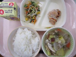 この給食には、氷見産のさつまいも、ゆず、小松菜、にんじん、ねぎが使われていました。おいしいはずですね。