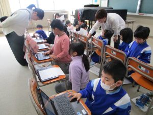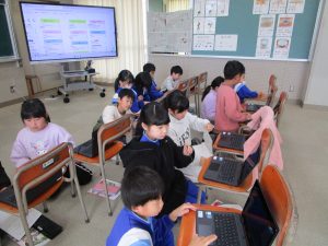 3年生の音楽は、「ちいきにつたわる音楽でつながろう」という題材で、祭り囃子の特徴を調べています。