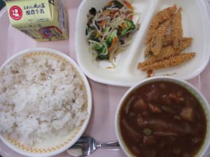 こんなにおいしい衣は何かと献立表を見ると、でんぷんを始め4種類の粉が用いられていました。