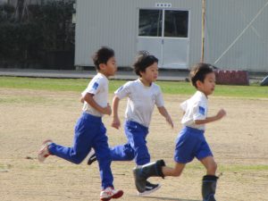 走る力を付けるためか、グラウンドを走っていました。