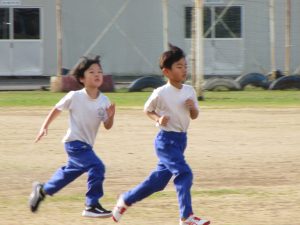 今日は寒さが和らぎ、中休みに1年生が外に飛び出していきました。