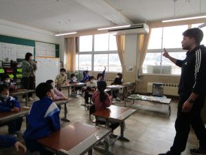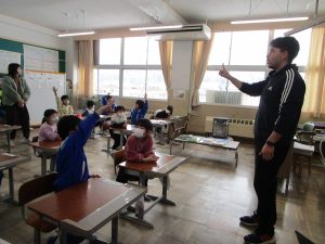 今度は、休み時間にアーロン先生と一緒に遊びましょう。