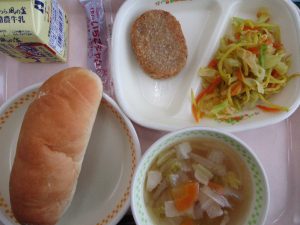 今日の献立のコッペパンやコロッケ、ジャムは、当時の子供たちに必要だった栄養がたくさん入っているそうです。