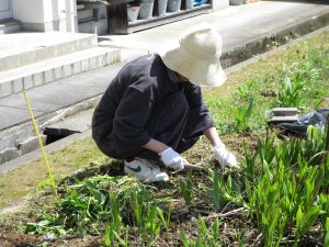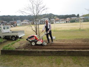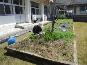 先日から、スクールサポートスタッフの谷内口さんと平井さんが、除草したり、耕してくださったりと、植物を栽培するための花壇を整備してくださいました。