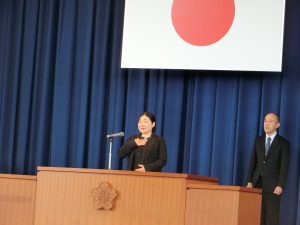 入場では恥ずかしそうにしていた1年生も、自分の名前を呼ばれると元気に返事をしていました。これから「おはようございます」「ありがとう」を交わしあいながら、一緒に活動できるのが楽しみです。