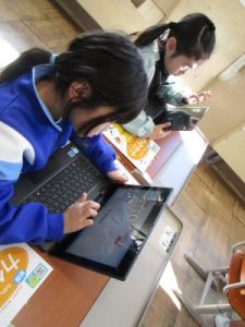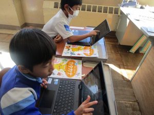 10月に更新されたタブレットを使って、1年生はカタカナを正しく書く練習をしています。