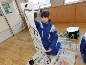 2回目は、準備も早く、もち慣れない筆に四苦八苦しながらも上手に書いていました。