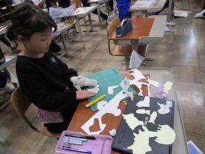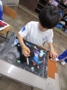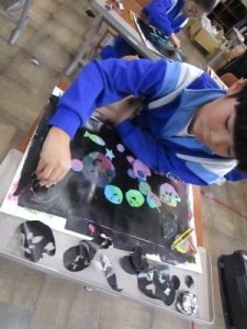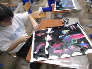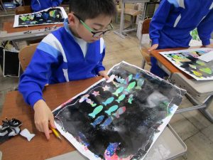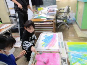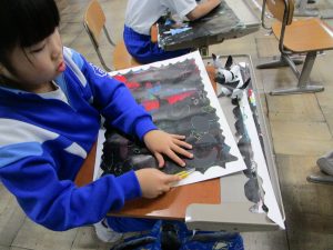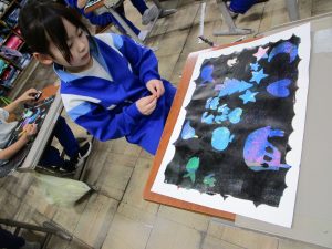 2年生は、ステンシルローラー版画に取り組んでいます。