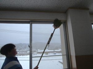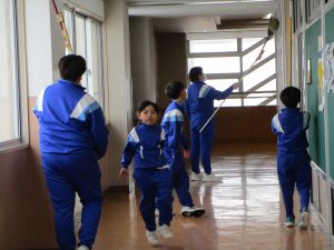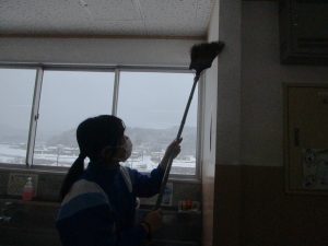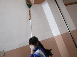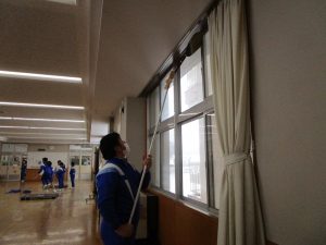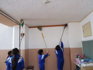 本校は、学期の間に2~3回、美化委員会がクモの巣取りをしてくれるので、天井や高窓、壁がとてもきれいです。保護者の皆様、美化委員会のがんばりを、どうぞご覧ください。