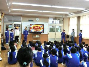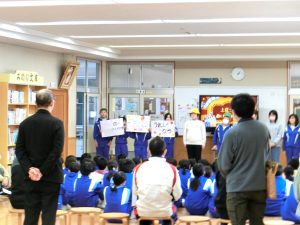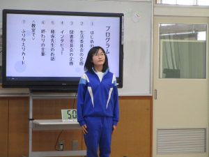 13日金曜日、生活委員会と図書委員会のコラボレーション企画、「心ほかほか頭ピカピカ集会」が開催されました。