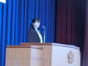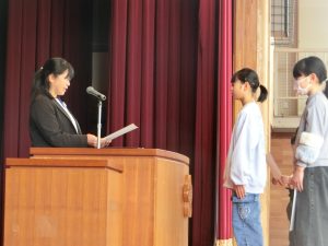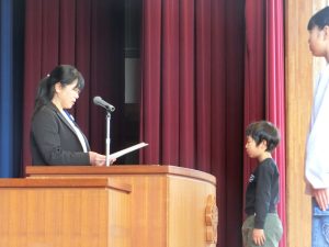 各学年の代表の児童が、1年間の頑張ったことをみんなの前で発表しました。4月から今日まで、できるようになったこと、もっとうまくなったこともあれば、苦手だったけど諦めずにやり続けたこともあったと思います。