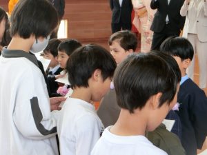 入学式が終わったあとには、同じ地区、近所のお兄さん、お姉さんたちとの対面式を行いました。