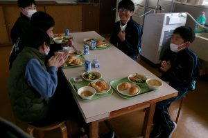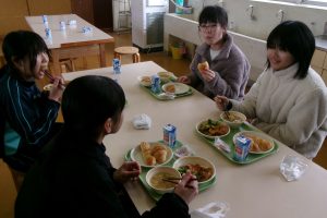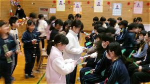 給食委員会の放送で、3月生まれの人を紹介し、メッセージカードをプレゼントしました。