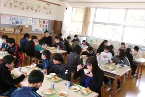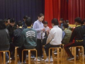体育館、渡り廊下、教室等、さまざまな場所で昼休みを楽しんでいました。