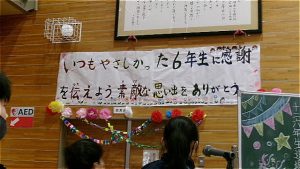 テーマは、「いつもやさしかった6年生に感謝を伝えよう 素敵な思い出をありがとう」です。