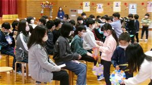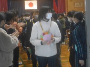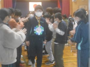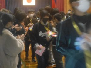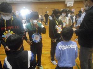 <1年生から>メダルのプレゼントと「おちゃらっか ほい♩」