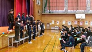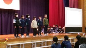 5年生が中心となって準備し、6年生への感謝の気持ちを各学年から伝えました。