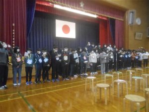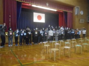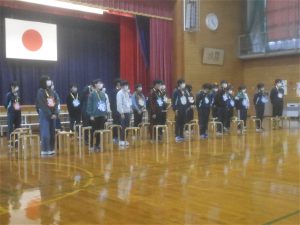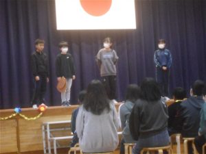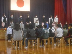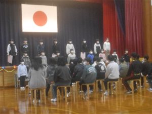 6年生のために、立派な式になるようにと、心構えや姿勢、呼びかけ、国歌、校歌の歌練習等をがん