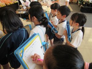 スーパーマーケットの見学を通して学んだことをたくさんメモして帰ってきました。