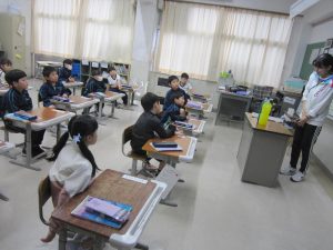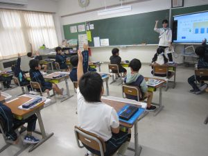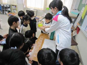 した。「どちらがどれだけ多いか」真剣に考える1年生。「ものさしではかるのかなあ」「えんぴつい