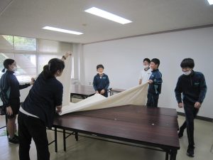 【6年生】学習発表会の後片付けに、一生懸命取り組んでいました。
